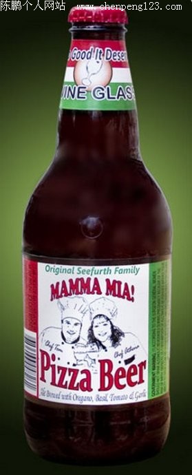 这种名为Mamma Mia Pizza Beer的啤酒据说是世界上第一款厨房专用啤酒,它把批萨的芳香和啤酒相结合。其酿造地点在芝加哥,出自专门制造诡异啤酒的两名小伙之手,原料其实是番茄