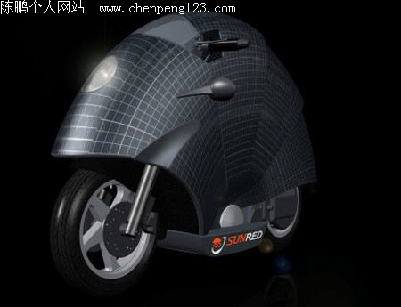 太阳能科技最令设计师头痛的部分就是太阳能板的大小,为了避免让太阳能板占有太多的位置,西班牙汽机车开发公司红太阳(SunRed)想到一个好方法——将太阳能板打造成蜗牛壳的半圆外形,使其与摩托车浑然一体,此外,当摩托车停止时,太阳能板还可以展开,表面面积将增加至25平方米,更大程度收集太阳能为电池充电,储存的能源量可满足约20公里的行驶。虽然这台摩托车目前只是台概念车,但红太阳公司以将它当作未来太阳能技术发展的里程碑。