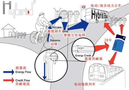 其原理其实很简单:用户租赁一辆前轮装有可收集轮轴转动能量发电机的特制自行车,这种自行车可以将行驶时所产生的动能转化为电能并自动储存起来。之后,用户只需将自行车停在与连接智能公共电力系统的停车柱上,就可以将储存的电能传输给电动或油电混合动力城市公共汽车使用。作为回报,用户在租用自行车时领取的ID卡可以记录骑车时为城市的公共交通做出的贡献值(可以分为日间/夜间模式来统计),并将之折算成可免费乘坐的公共交通里程。比如,骑自行车两个小时所产生的能量能换取免费乘坐地铁40站路程的奖励。所以,用户骑得越多,所产生的能量越多,贡献就越大,所获得的报酬就越多。