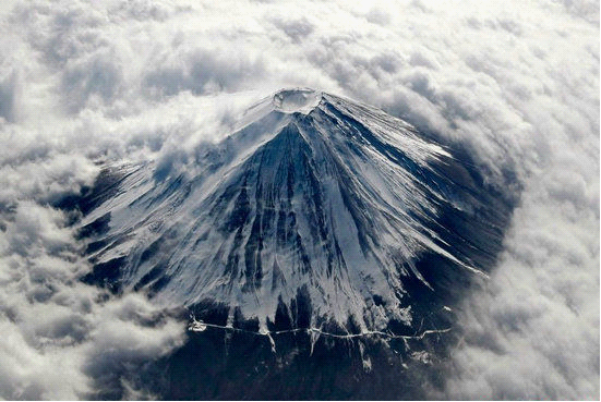 富士山被日本人民誉为“圣岳”,是日本民族的象征。整个山体呈圆锥状,一眼望去,恰似一把悬空倒挂的扇子,日本诗人曾用“玉扇倒悬东海天”、“富士白雪映朝阳”等诗句赞美它。