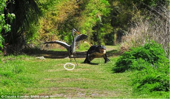 昆克尔女士来自佛罗里达州,她补充道:“事实上,我当时觉得莫名其妙,只是在事后当我翻看我拍摄的照片时,才发现原来苍鹭的嘴里叼着一条小鳄鱼,这才搞清楚到底发生了什么。”