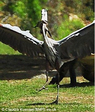 这只可怜的小鳄鱼还太小,毫无还手之力。苍鹭叼着自己的午餐拔腿就跑。