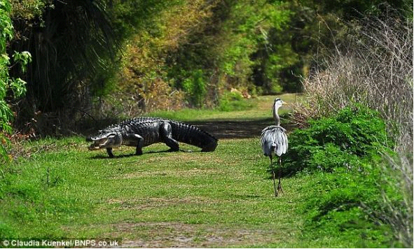 她说:“说实话这场面看上去有点吓人。还好我当时位于将近30米开外,所以我不必担心自己的安危。我起先看到的只是一直鸟站在那里。这并非什么稀奇的事情,所以我正准备转身离开,但接下来我就看到了这条大鳄鱼在快速的奔跑。你知道,这样的大鳄鱼一般不怎么活动,一般它们只会懒洋洋的晒太阳,我从没见过这样的场景。”