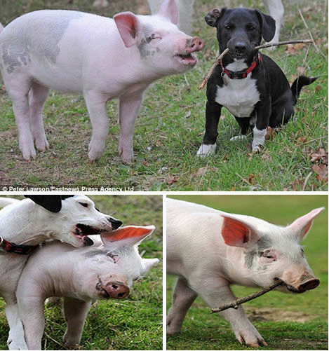 某野生救助中心救下了一只生病的5周大的小猪布鲁邓斯(Prudence),那时,她的主人决定开枪杀了她。布鲁邓斯还是那么的小,救助中心的救护人员把它放在了房子附近。意外的是布鲁邓斯竟然挤进了六只小狗的世界。不久布鲁邓斯就与其中一只小狗亨利的关系密切。布鲁邓斯似乎把自己当成了狗,总是蹦蹦跳跳,追赶和取回树枝。夜里,布鲁邓斯蜷缩在小狗中间,恬然入梦。融入是友谊的真谛。