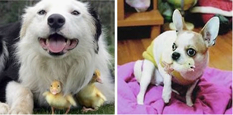 请不要惊讶,你看到的的确是一只狗和几只小鸭。英国德文郡(Devon)的某个农场里,博德牧羊犬本收养了一窝的小鸭。这是感情胜过天性的最好证明。在中国,一只名花花的吉娃娃狗正保护它嘴里的那只小鸡,别误会,它可没有把它吞下。花花把小鸡当成了自己的孩子,并且保护它不受侵害。超越天性的友谊,只在一念之间。
