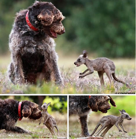 这是另一段“不可能”的友谊,一只德国短毛狗和一只小袋鼠的友谊。据了解,狗儿雷克斯(Rex)在澳大利亚某条街道上发现了一只死去的袋鼠,它救下了幸存的小袋鼠,把它带回家,并把它放在了主人的面前。小袋鼠留了下来,雷克斯很快就和它成了好朋友。心中有爱,友谊无处不在。