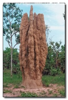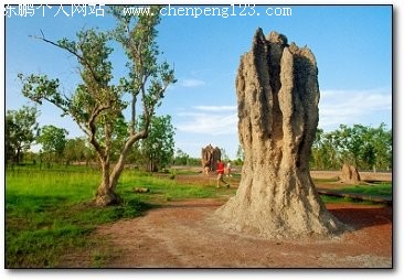 白蚁或许经常是啃食破坏的负面形象示人,但是在野外,它们却是勤劳的建筑师,白蚁的巢穴类似塔的形状,对于体型很小的白蚁来说,是一座庞然大物。
