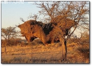 在鸟类当中,织布鸟并不是唯一能够建造如此巨大巢穴的一种鸟,但是它们的建筑却非常牢固,能够住下好几代织布鸟,更有趣的是,它们还会把空余的房子“租”给其他的鸟类居住。