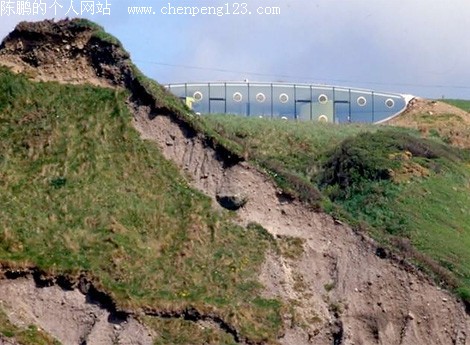 背景:这栋房屋位于威尔士西南海岸的一个国家公园内。现在它沉入了地面之下,因此你从图中所看到的景色有些不连贯。它是由英国未来系统建筑师事务所于1994年所设计。