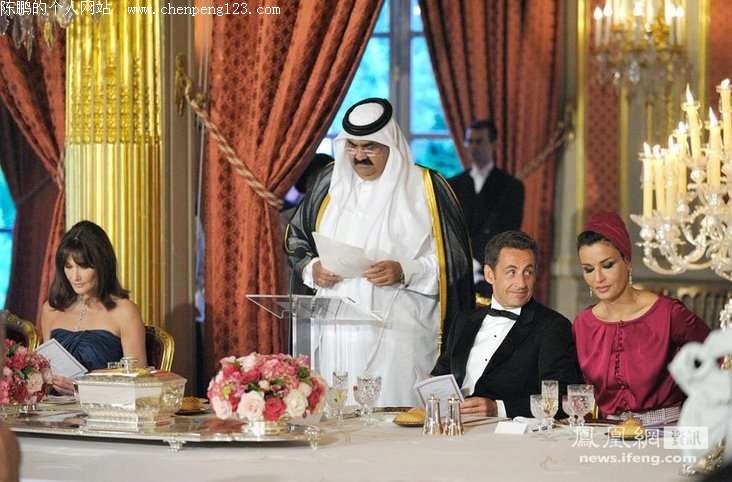 当地时间2009年6月22日,法国巴黎爱丽舍宫,法国总统萨科齐和第一夫人布吕尼设宴款待来访的卡塔尔埃米尔和卡塔尔第一夫人,席间,法国总统萨科齐扭头向旁边卡塔尔第一夫人所坐的方向望去,不知是在看远处还是在看眼前人。