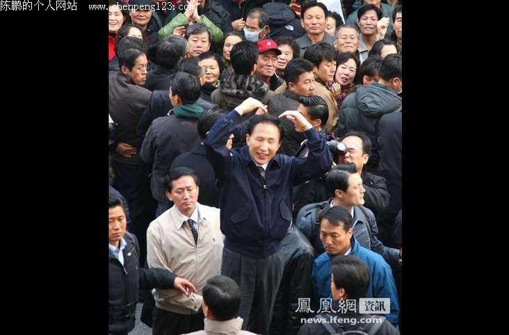 当地时间2009年12月2日,韩国,总统李明博站在人群中,学韩剧《浪漫满屋》中的经典姿势,把双手放在头顶做心形,扮可爱雷倒众人。