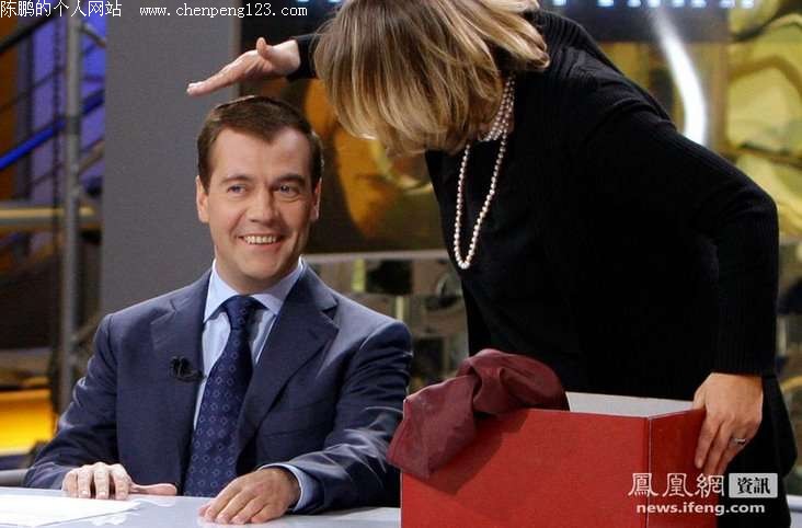 当地时间2009年10月7日拍摄图片,莫斯科,俄罗斯总统梅德韦杰夫为录制节目做准备。