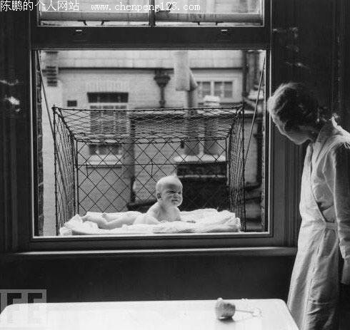 在很高的楼房上,一些婴儿被用这样的笼子吊在窗户外面养着。在当年的伦敦,切尔西育婴协会就分布着许多这样的笼子。